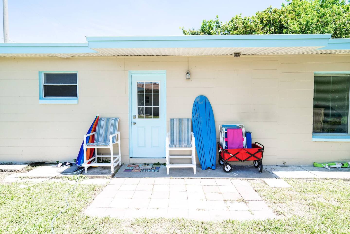 This unit is a duplex. You have your own entrance and private outdoor area. - One of the reasons we purchased this property was to use it and to walk the blocks. - Two blocks one way is the Banana River where you can fish off the dock. - Two blocks the other way is the beach between the two are friendly neighborhoods to walk and talk and enjoy the safety and beauty of the area.