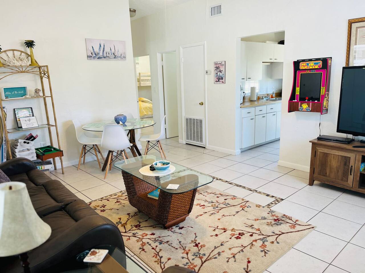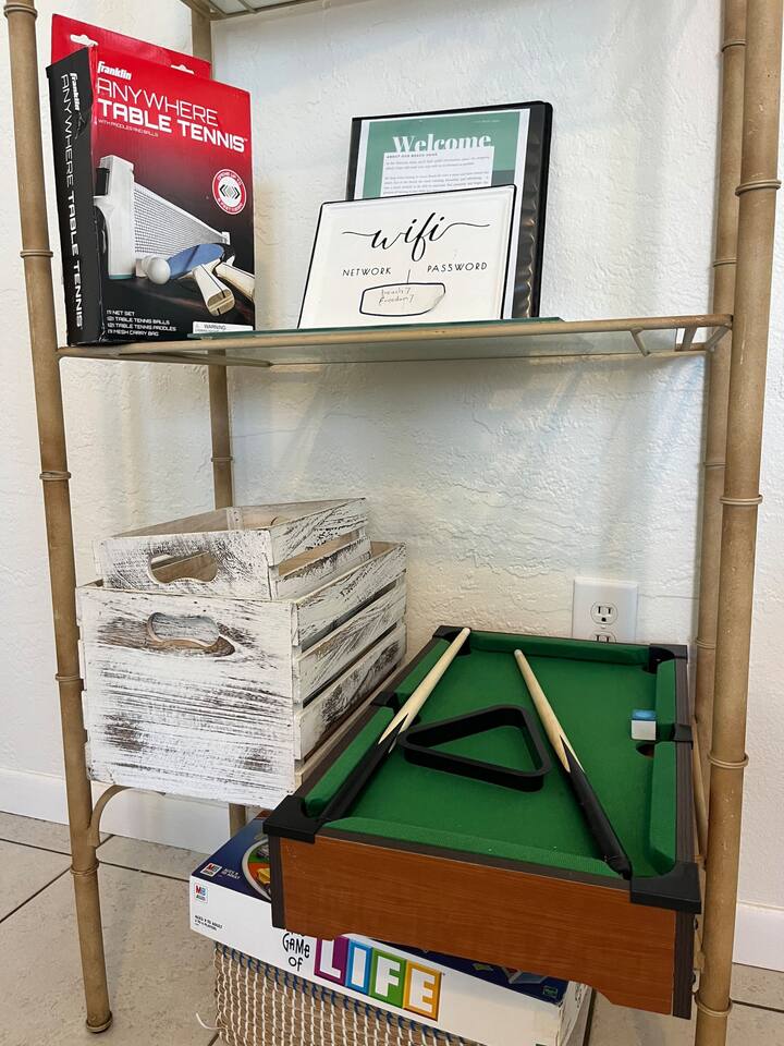 Welcome to your South Cocoa Beach retreat! Just two blocks from the ocean and steps from the Banana River. Enjoy free bikes, surfboards, beach gear, a hot tub on the enclosed porch, and classic arcade games inside. Relax on luxury reclining sofas and a comfortable king bed. Explore local shops and restaurants. BONUS: Access to a heated pool and huge game room just four blocks away—with free games, showers, and bathrooms. The perfect mix of fun, comfort, and coastal charm!
