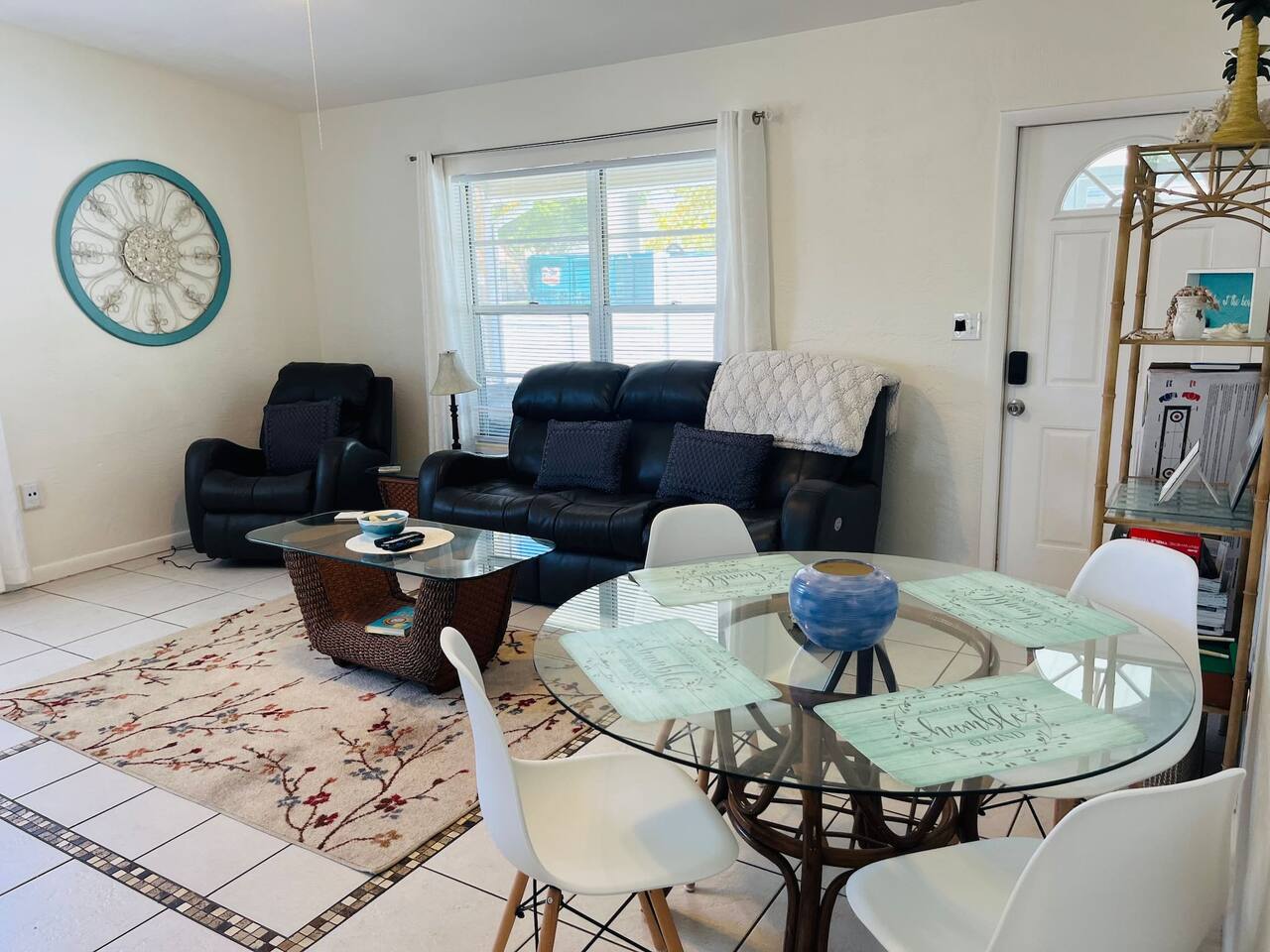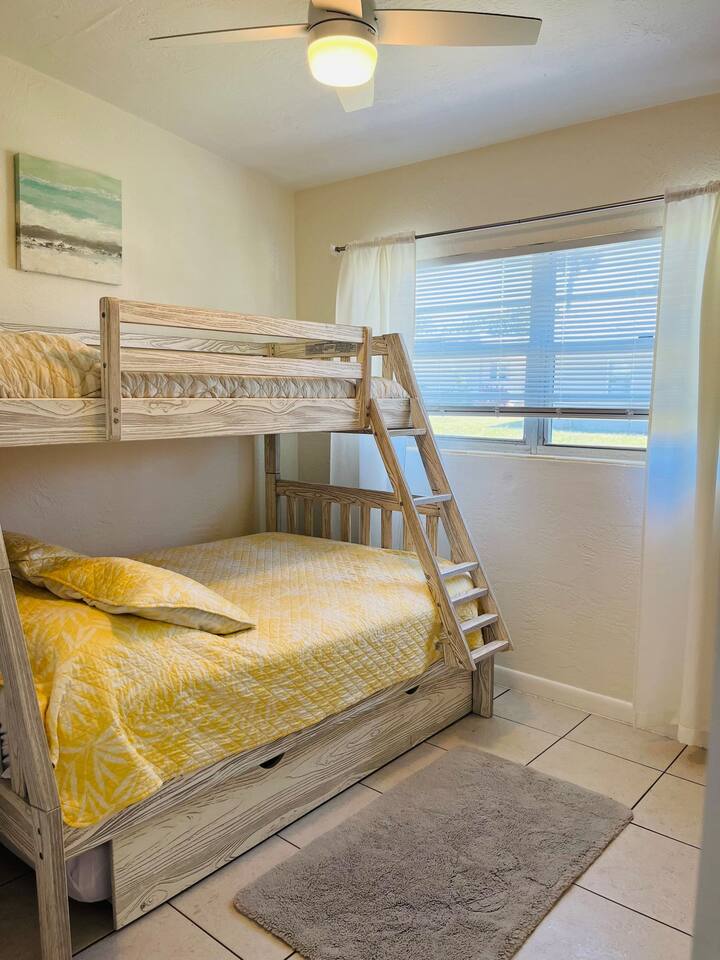 Welcome to your South Cocoa Beach retreat, a newly renovated getaway just two blocks from the ocean and steps from the Banana River. Whether you're starting your day with a beach walk, fishing off the nearby dock, or exploring local shops and restaurants, this home offers the perfect blend of relaxation and convenience.<br><br>Inside, the open living area features a large wrap-around sofa seating six, a glass dining table for four, and stylish coffee tables with books and games. The big-screen Tv, equipped with Roku, gives you access to Netflix, Hulu, Disney+, Espn+, and more. For added fun, enjoy classic video games on the connected console or challenge yourself on the full-size arcade machine.<br><br>Just off the living room, the screened-in front porch offers a peaceful spot to unwind, allowing fresh air and a comfortable place to relax without worrying about bugs.<br><br>The king bedroom includes a cozy lounge chair and ottoman, perfect for reading or watching Tv in peace. The queen bedroom is simple and comfortable, featuring a plush bed and a Roku-enabled Tv for a relaxing night’s sleep.<br><br>The fully equipped kitchen includes everything you need for your stay: an oven, microwave, cookware, and complimentary coffee and tea (available in both Keurig and drip options).<br><br>This is a private duplex unit with its own entrance and outdoor space. Parking is conveniently located on-site, just steps from your door. A privacy fence added in November 2022 allows dogs to roam freely in the yard while you relax on the porch. If you're in the mood for an outdoor meal, the Bbq grill is available for use.<br><br>The walkable neighborhood is two blocks from the beach in one direction and two blocks from the Banana River in the other. For a fun way to explore, golf cart rentals are available for around $75 per day.<br><br>South Cocoa Beach is a mix of vacation homes and local residences, offering a peaceful atmosphere without the feel of a hotel district. Whether you're here to enjoy the ocean, take in the quiet surroundings, or experience the best of Cocoa Beach, this home is designed to make your stay easy and enjoyable.