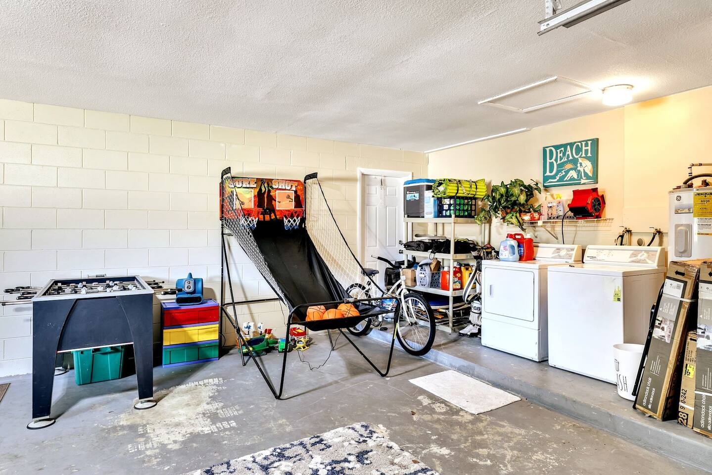 Unwind in a comfortable and well-equipped home, conveniently located near Orlando/Sanford Airport, Wekiwa Springs, and a variety of attractions. Whether you're looking for a peaceful retreat or an adventure-filled getaway, this home provides the perfect setting. Enjoy the fully equipped kitchen for all your culinary needs, sleep soundly in comfortable beds, and relax on the spacious back deck with a privacy fence. For entertainment, the game garage offers endless fun with foosball, ping pong, darts, basketball, and more. The quiet neighborhood provides a relaxing atmosphere while still being close to parks, playgrounds, and local activities.<br><br>The home is designed for comfort and convenience. The living room features ample seating, including a pull-out couch to accommodate extra guests if needed. A fully equipped kitchen boasts granite countertops, stainless steel appliances, a coffee pot with fresh coffee grounds, and a Keurig for your morning brew. The backyard is a peaceful retreat with lounge chaise chairs, a privacy fence on both sides, and play toys for children. The spacious back deck is the perfect spot to relax, enjoy the fresh air, or gather with family and friends.<br><br>Bikes are available for exploring the neighborhood, and Smart TVs are provided in all rooms. The backyard offers a relaxing space to unwind, play games, or enjoy a cozy bonfire.